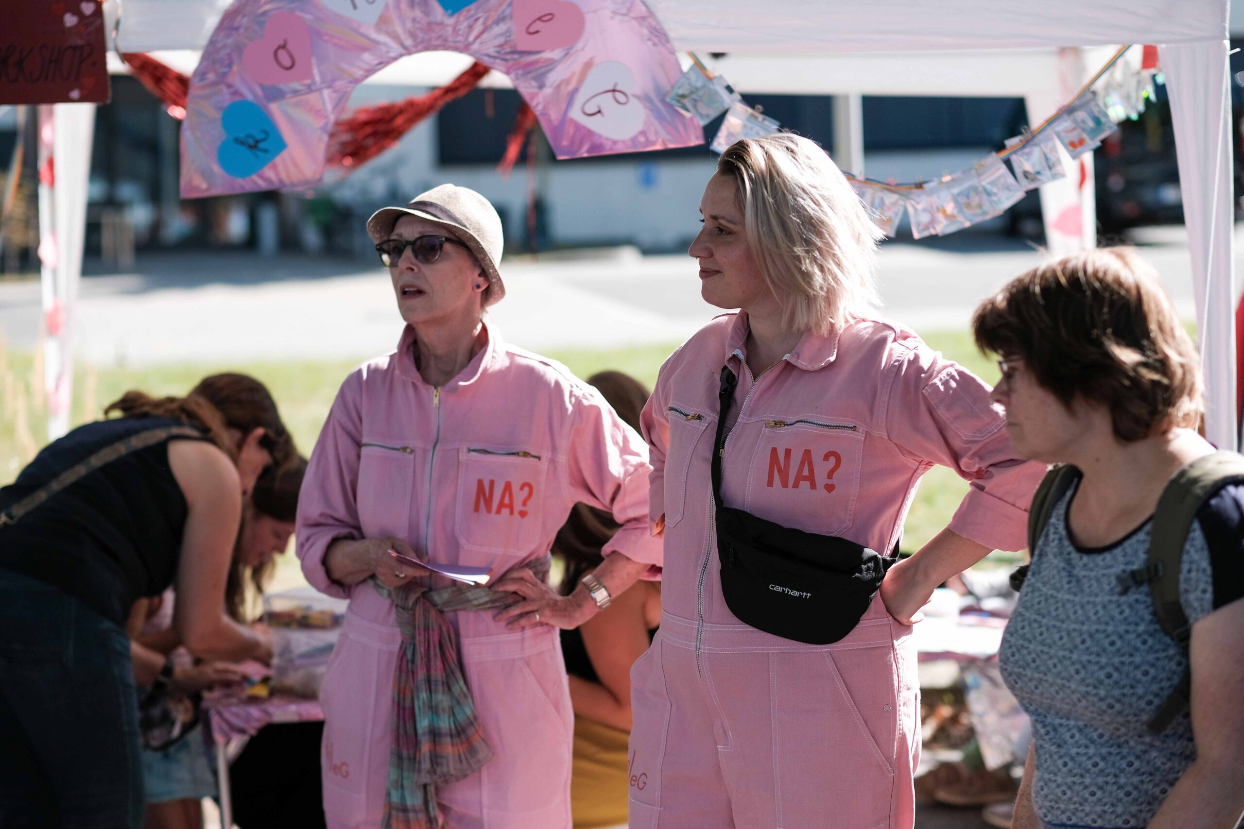 Ganz so rosarot wie unsere Overalls wird die Welt für junge Liebende wahrscheinlich nicht aussehen, und dennoch haben sie sich von den Zartfarbenen überzeugen lassen, eine „confession“ abzugeben. Beim ZAKK-Straßenfest am 7. September 2025 war kohleG mit dem Projekt „Love Island“ vor Ort. Junge Menschen wurden von uns angesprochen und gebeten, uns eine kurze Aussage zum Thema LIEBE/BEZIEHUNG aufzuschreiben, die wir Ende des Jahres zusammen mit vielen Weiteren, die wir bei anderen Gelegenheiten gesammelt haben, auswerten wollen.